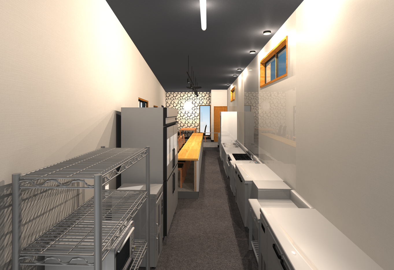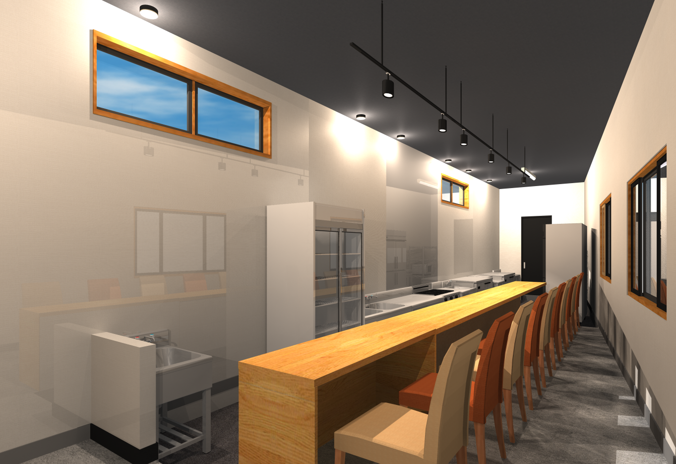 カウンターメインのオープンキッチンをご希望だったので、最も考慮したのが、厨房側のオーナー様と客席側のお客様の目線の高さです。極力、見下ろす目線にはならない様に配慮しました。この辺りは、長年飲食業を営んで来た、私の父や従兄からもいろいろ情報を得て、ご提案致しました。