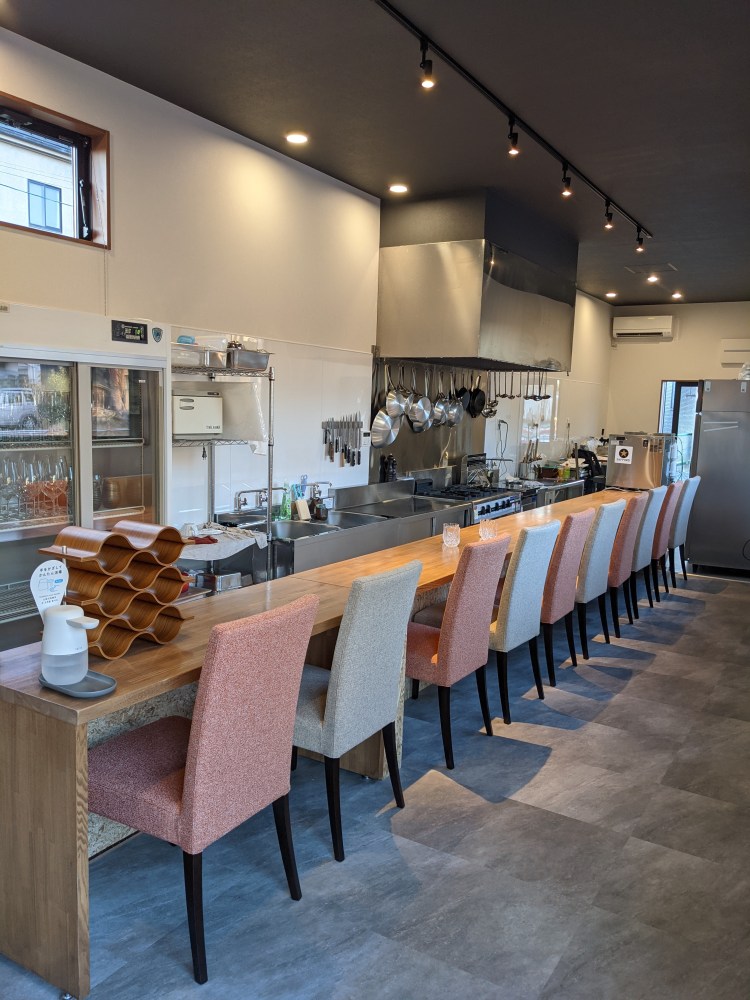 そして、内装もトータルコーディネートさせていただきました。イタリアンベースの洋食屋さんで、愛媛から直送の鮮魚、自家製野菜等の和の食材も取り入れられるとの事で、内装も和・洋・伊のミックススタイルのコーディネートです。