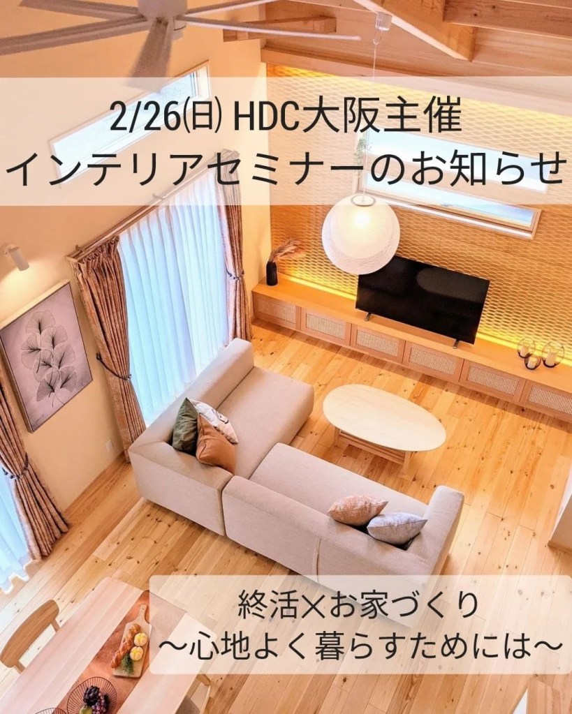 セミナーのご案内です。ハウジング・デザイン・センター大阪(HDC大阪)主催「春に向けて準備!HDCインテリアセミナー」にて